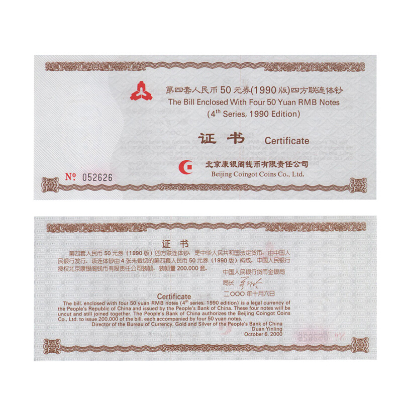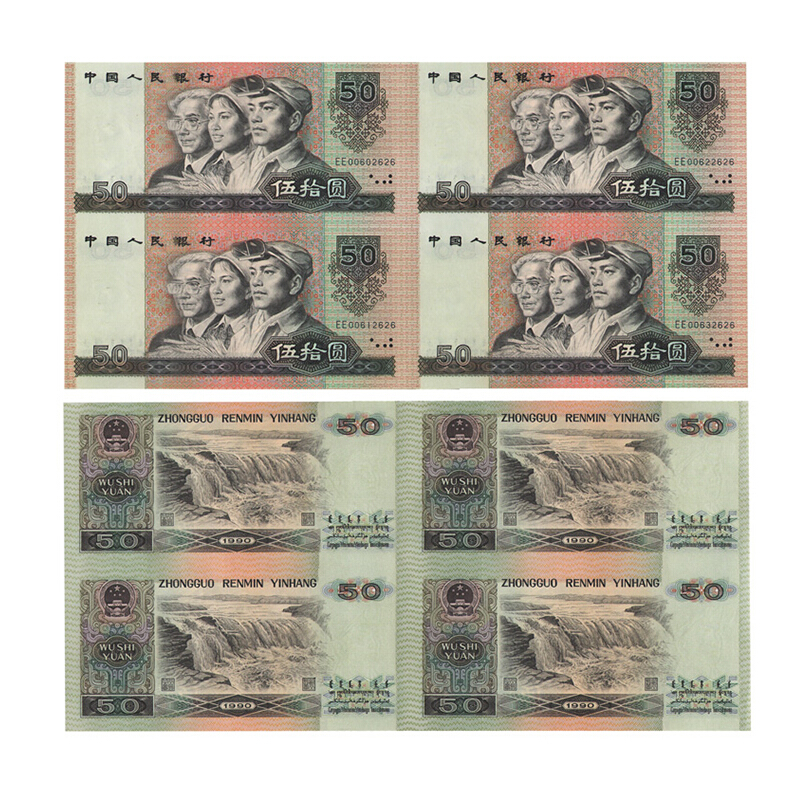第四套人民币连体钞 1990年50元四连体钞 康银阁版
