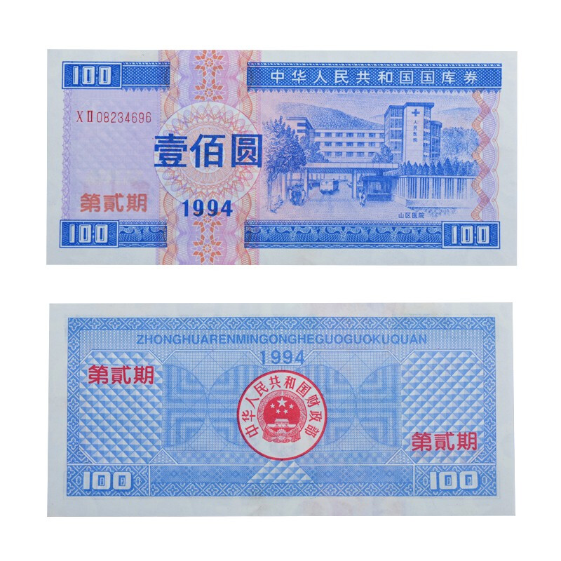 中国国库券 1994年100元(第二期) 山区医院 全品