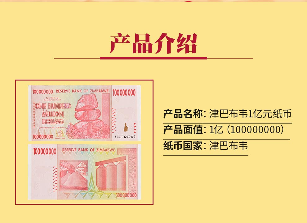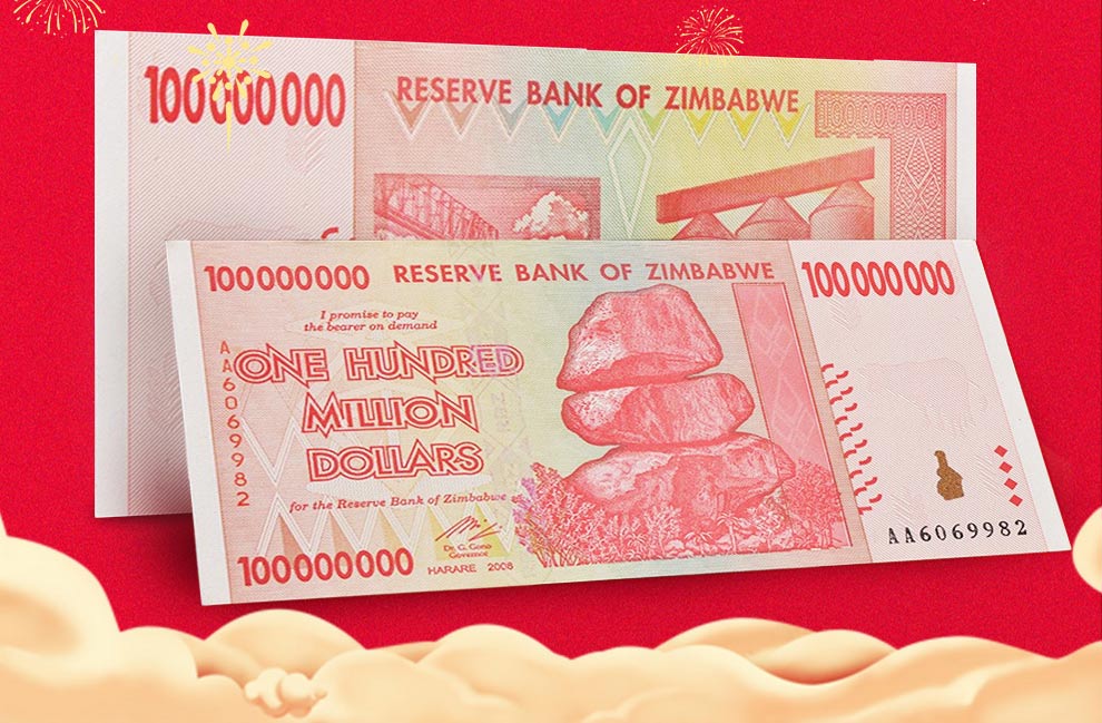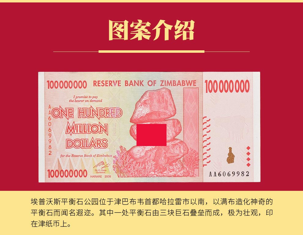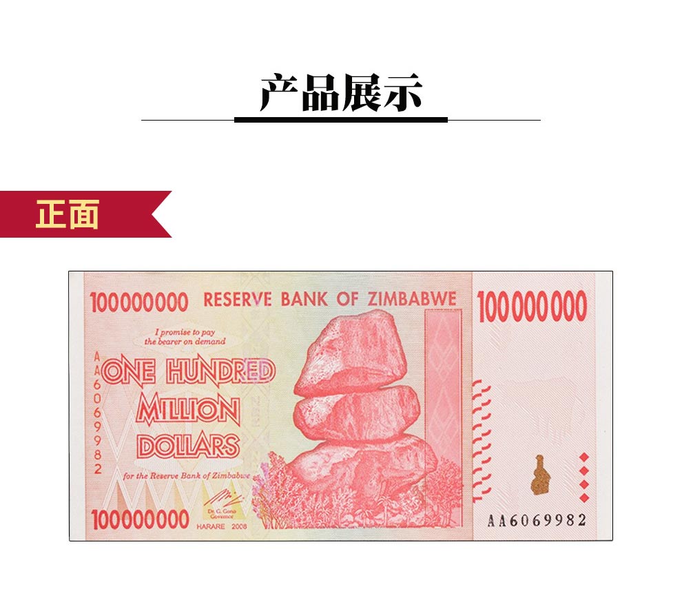 非洲-全新UNC 津巴布韦纸币 1亿面值津元 外国纸币 超大面值纸币