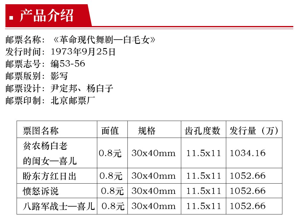 编号邮票 1973年邮票 编53-56 革命现代舞剧—白毛女