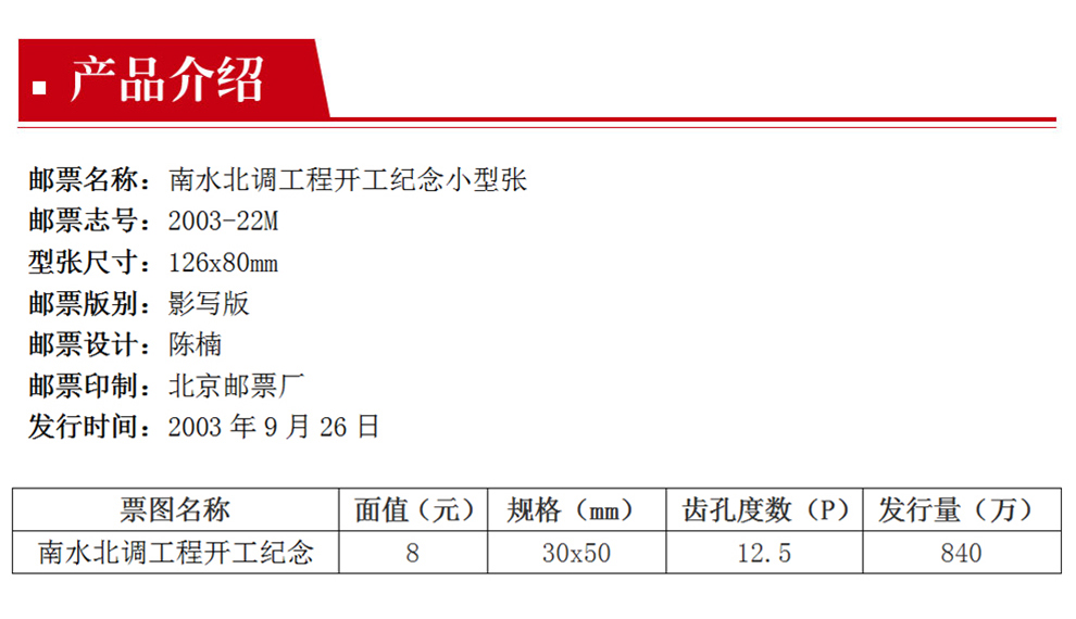 2003-22M 南水北调工程开工纪念邮票 小型张