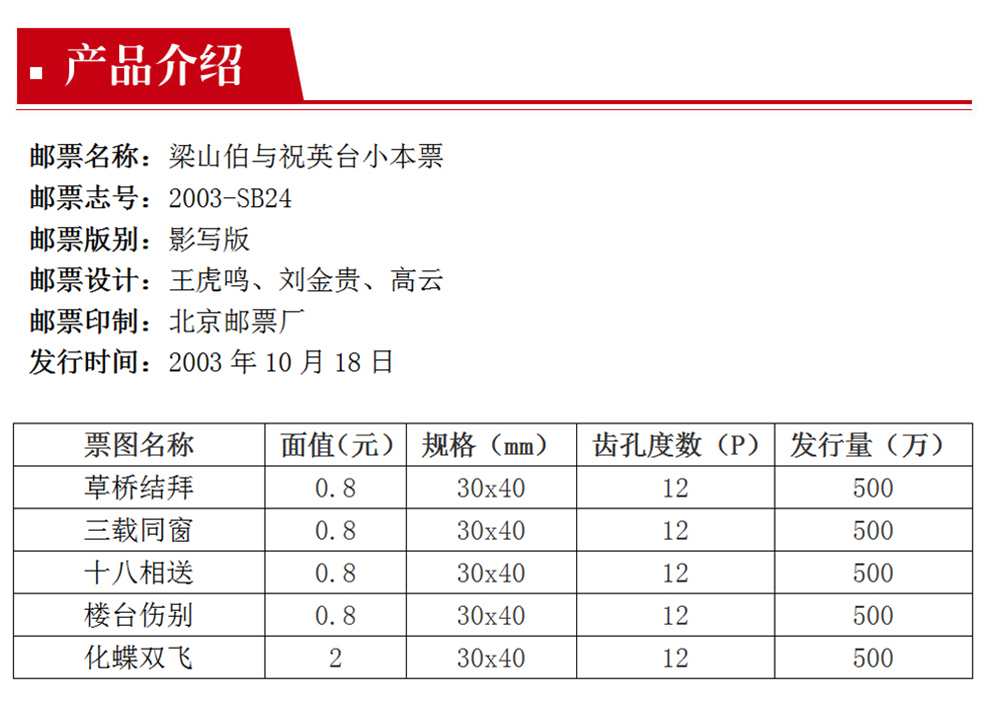 2007-SB24 梁山伯与祝英台邮票 小本票