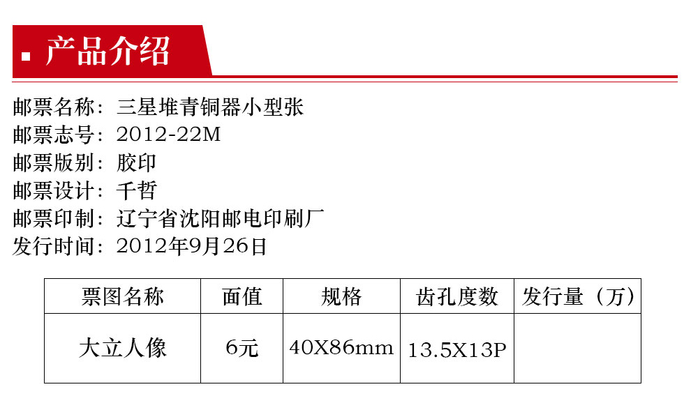 2012-22M 三星堆青铜器邮票 小型张