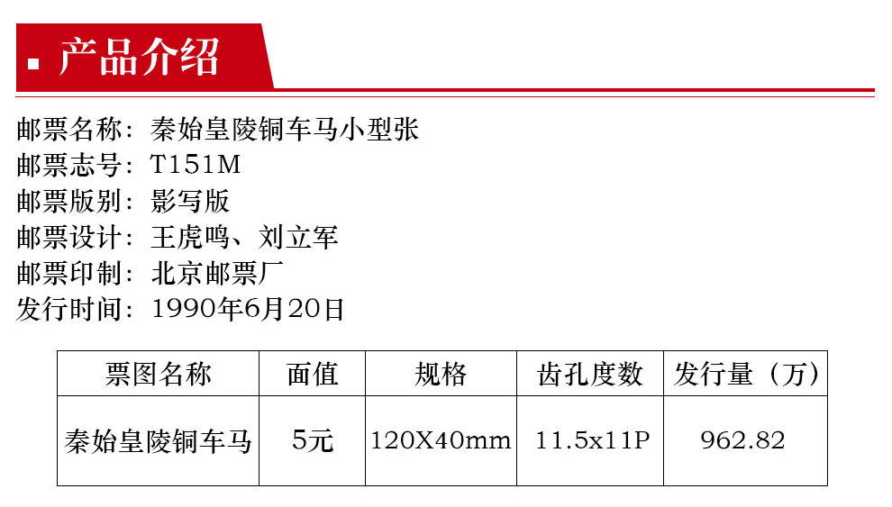 T字邮票 T151M 秦始皇陵铜车马邮票 小型张