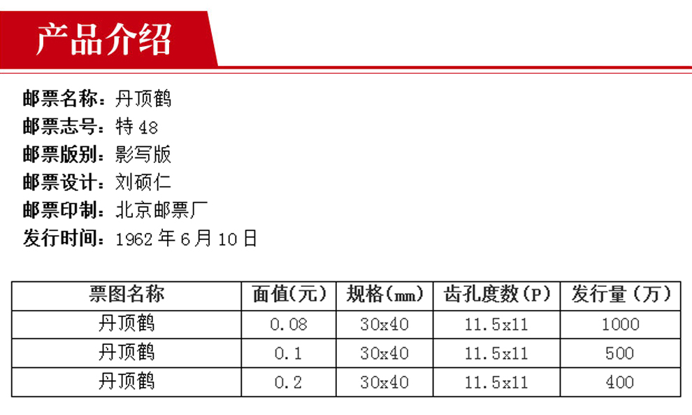 老纪特邮票 特48 丹顶鹤 1960年邮票