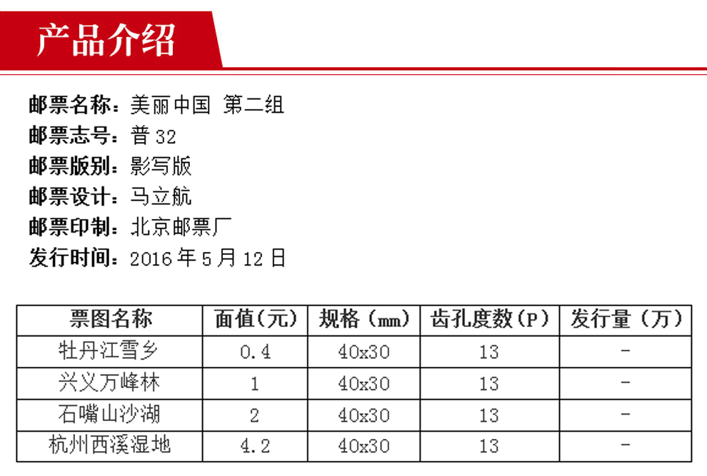 普通邮票 普32 美丽中国 第二组