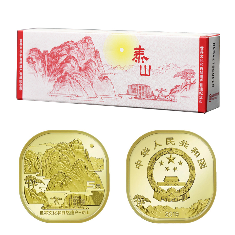 2019世界文化和自然遗产 泰山纪念币 5元面值 原装整盒100枚