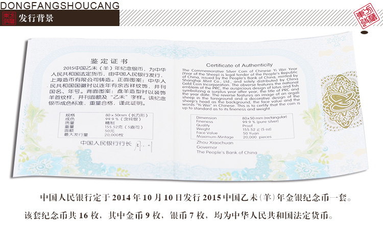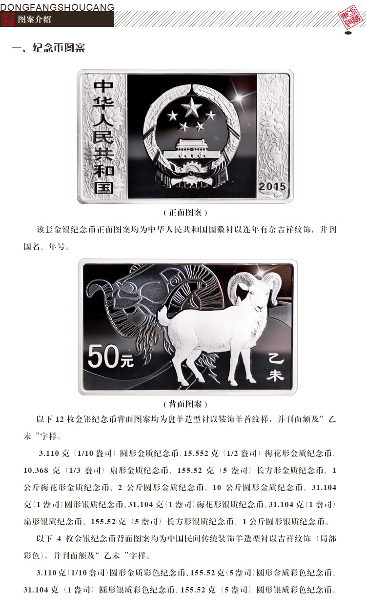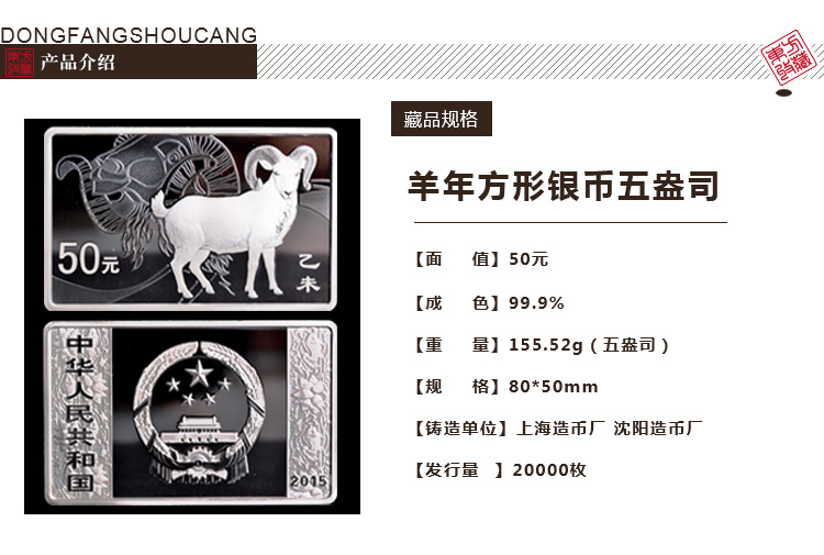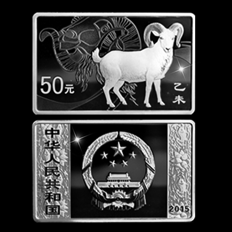 2015羊年生肖金银纪念币 方形5盎司银币