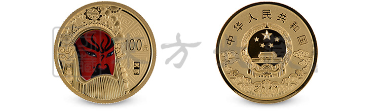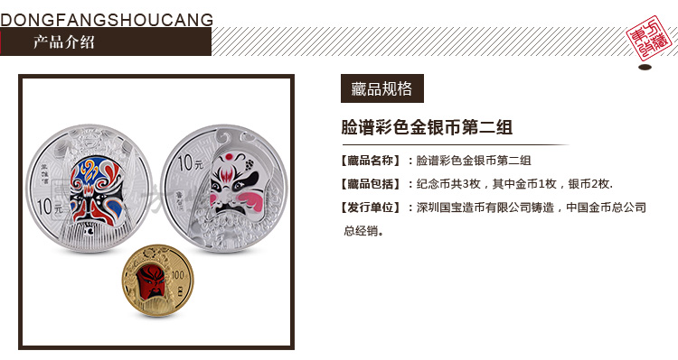东方收藏 中国京剧脸谱彩色第一组金银币纪念币1/4盎司金+1盎司银*2枚