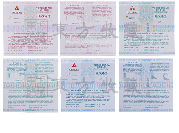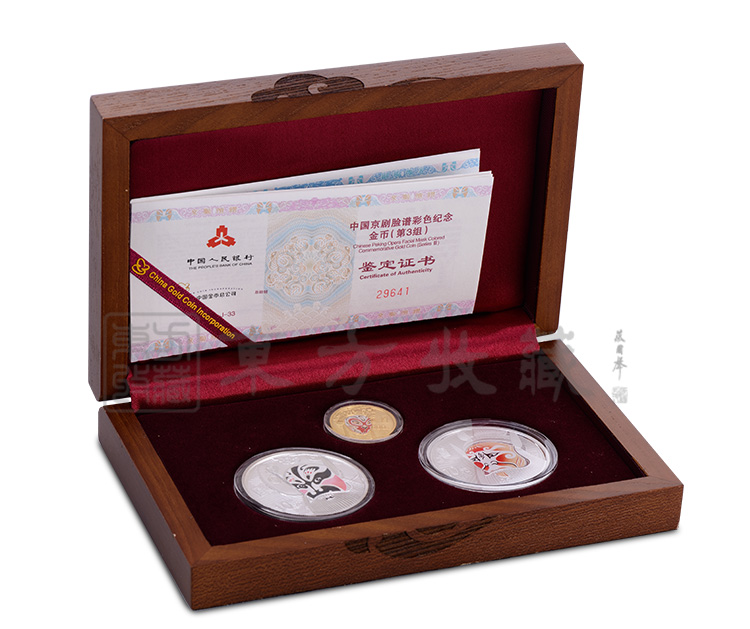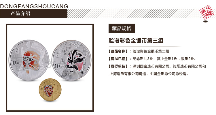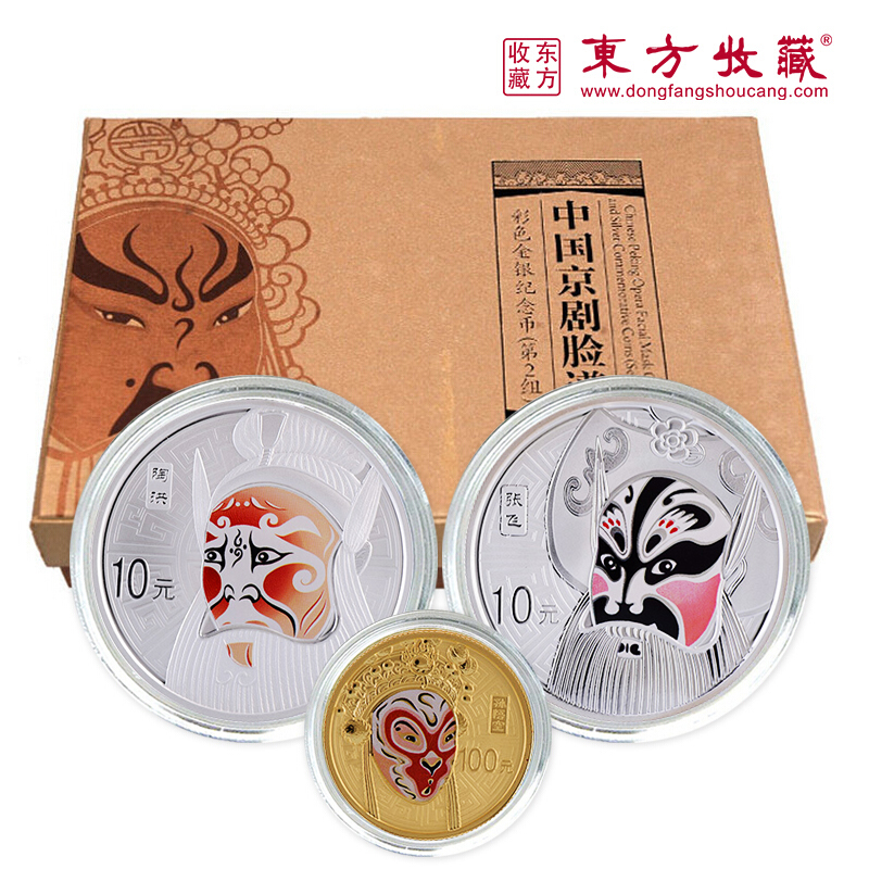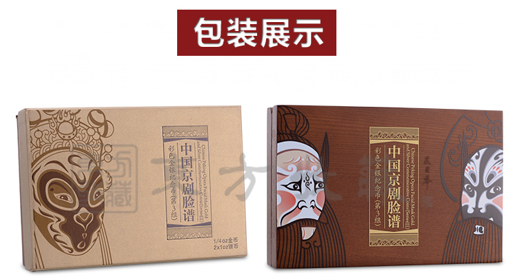 东方收藏 中国京剧脸谱彩色第三组金银币纪念币1/4盎司金+1盎司银*2枚