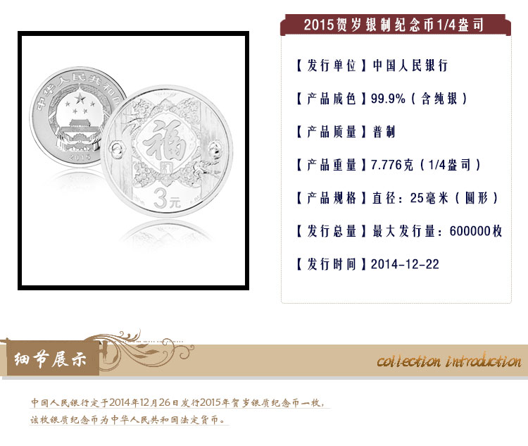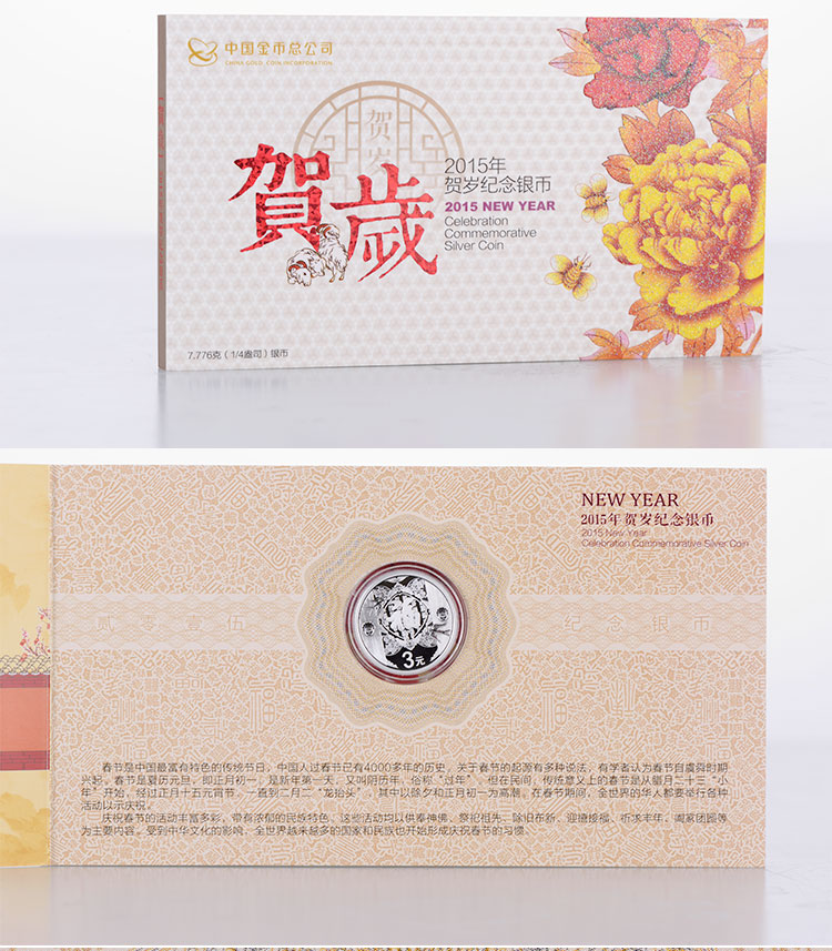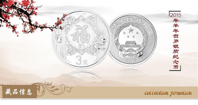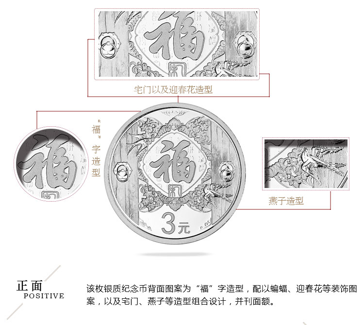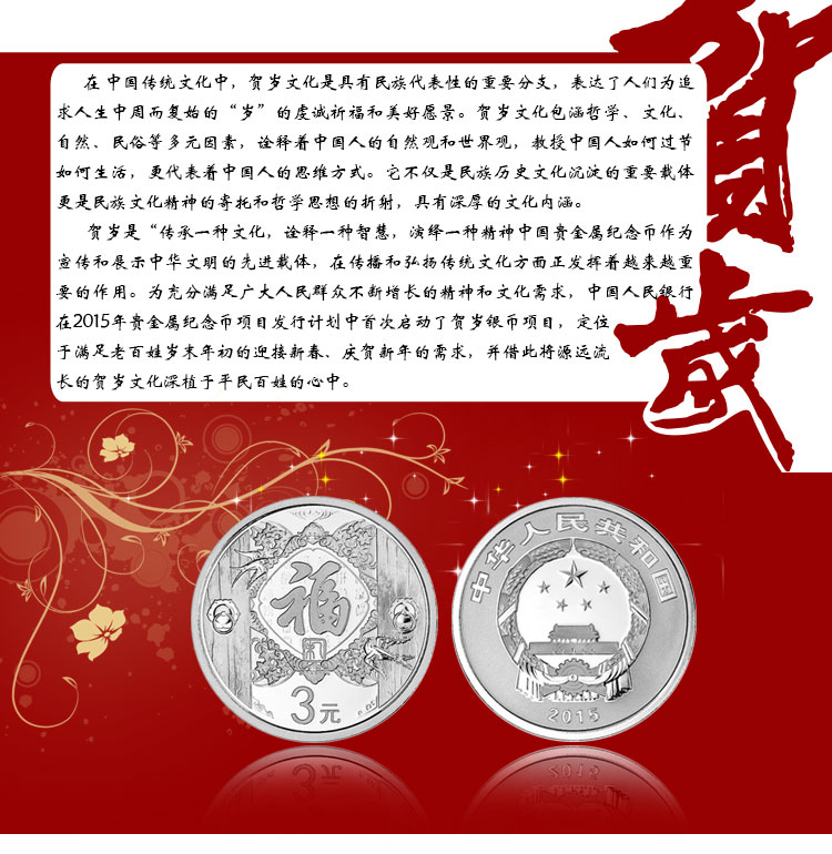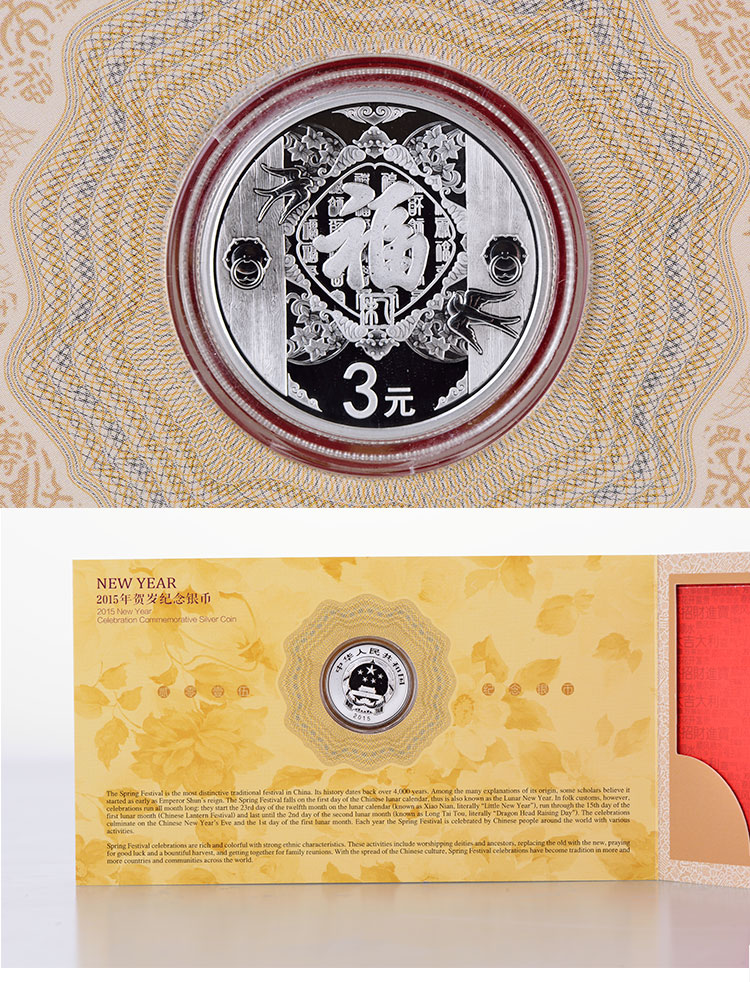2015年贺岁银质纪念币 2015福字币 3元面值 福字银币 8克银