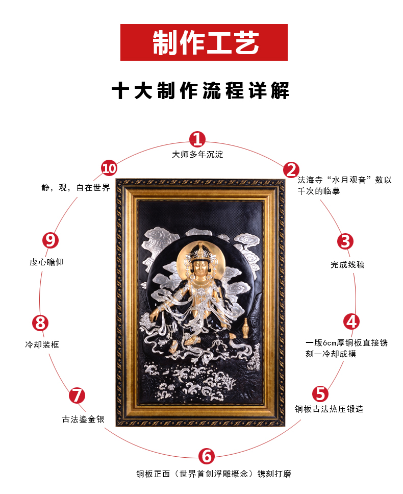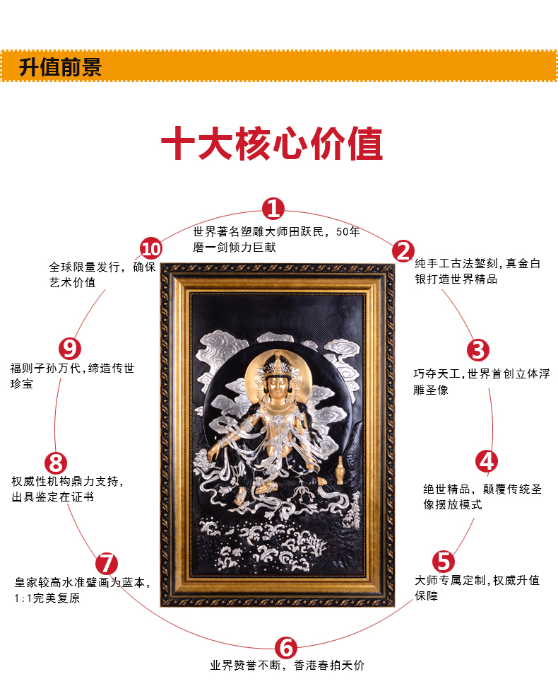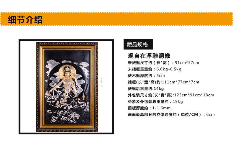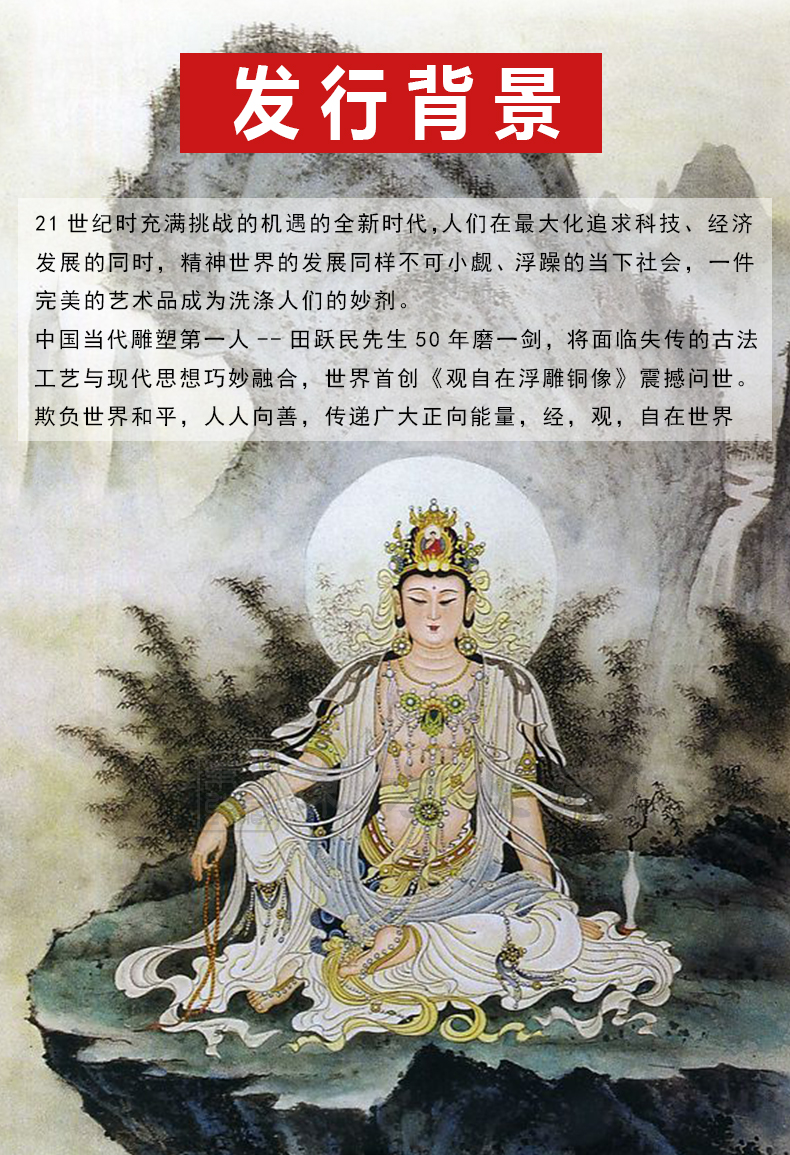东方收藏 观自在观世音浮雕铜像(赠大师田跃民画)