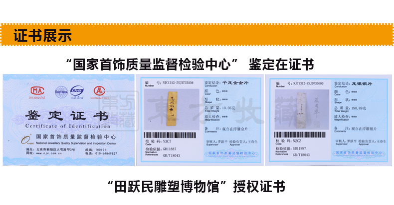 东方收藏承诺遵守商业道德,诚信为本、依法经营,接受会员监督。东方收藏所有藏品均有相关机构出具的证书,如果您发现虚假藏品,即可假一赔十。