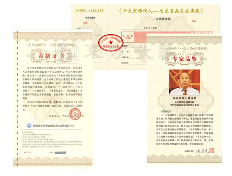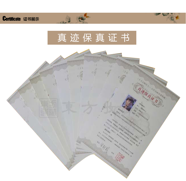 东方收藏承诺遵守商业道德,诚信为本、依法经营,接受会员监督。东方收藏所有藏品均有相关机构出具的证书,如果您发现虚假藏品,即可假一赔十。