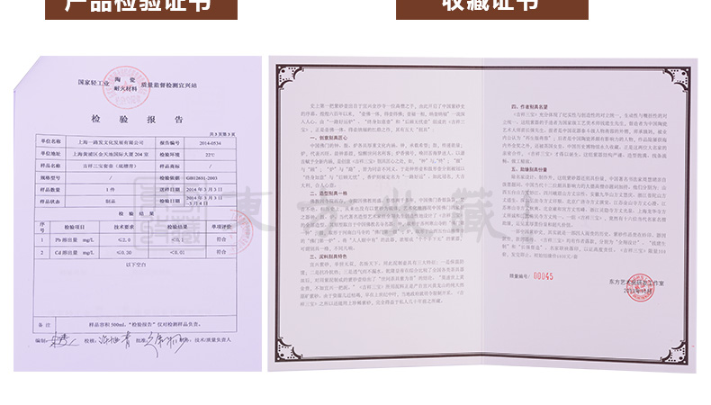 东方收藏承诺遵守商业道德,诚信为本、依法经营,接受会员监督。东方收藏所有藏品均有相关机构出具的证书,如果您发现虚假藏品,即可假一赔十。