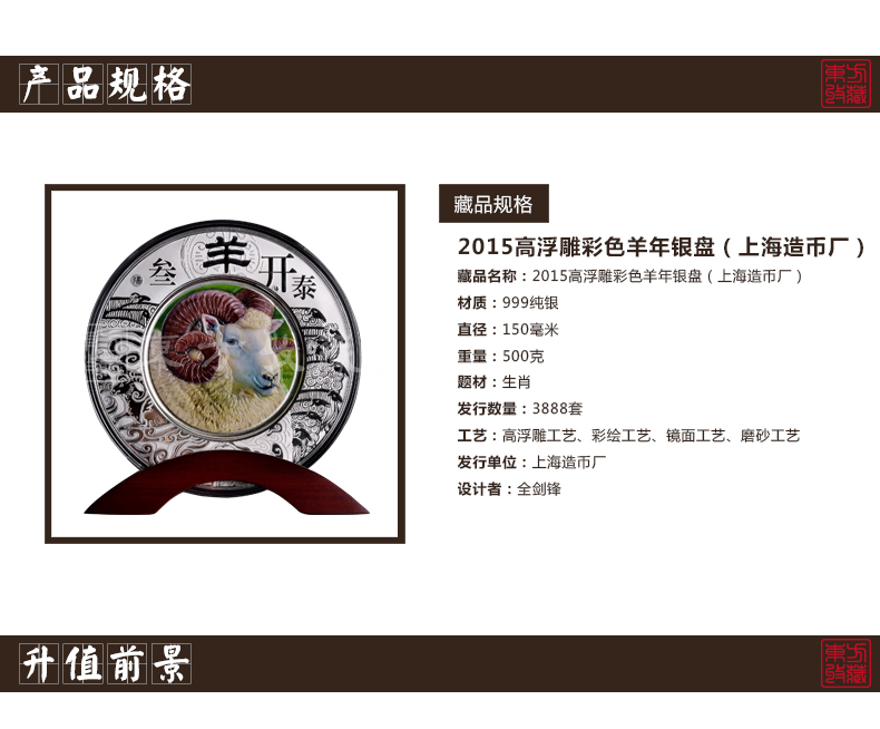 东方收藏 2015羊年银盘 羊盘(上海造币厂)