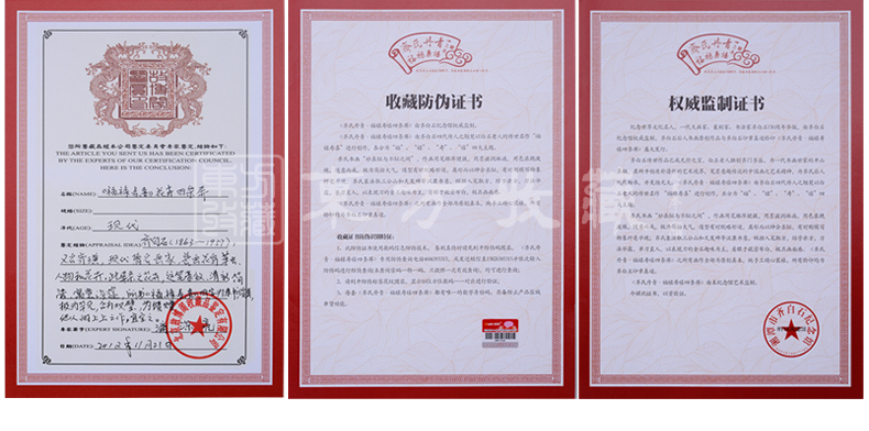 东方收藏承诺遵守商业道德,诚信为本、依法经营,接受会员监督。东方收藏所有藏品均有相关机构出具的证书,如果您发现虚假藏品,即可假一赔十。