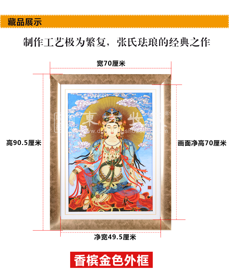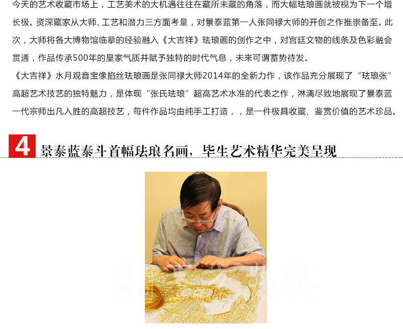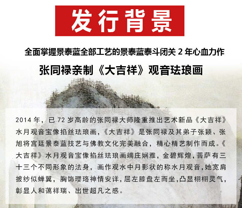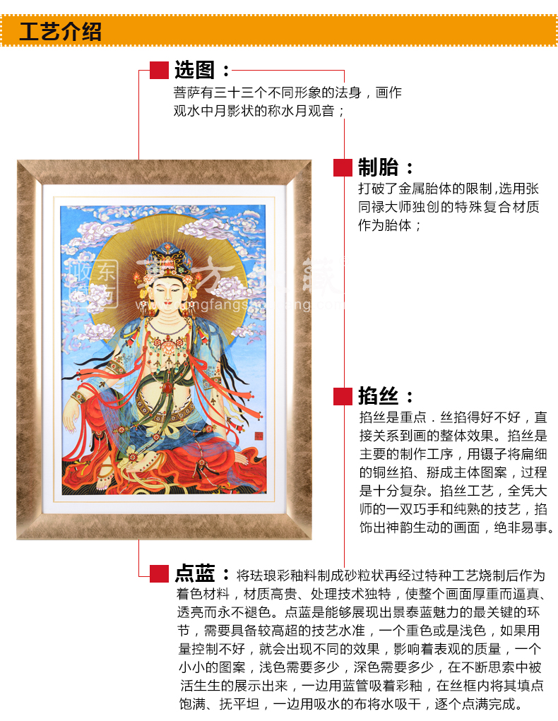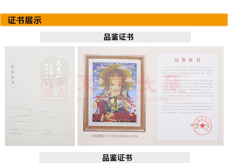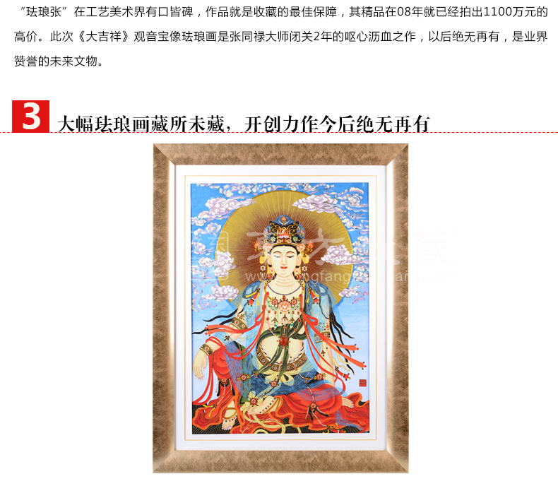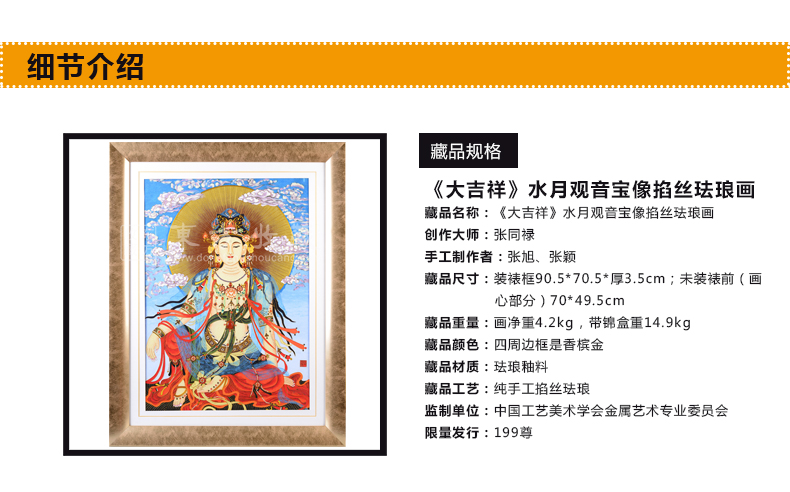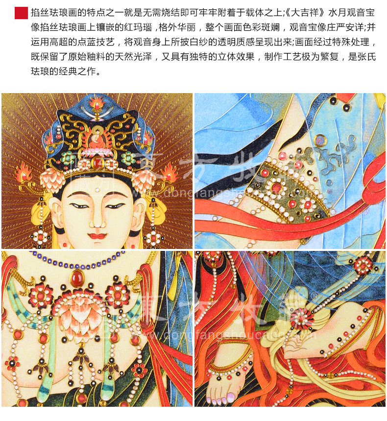 东方收藏《大吉祥》水月观音宝像掐丝珐琅画 张同禄大师名作 名家书画 纯手工掐丝珐琅