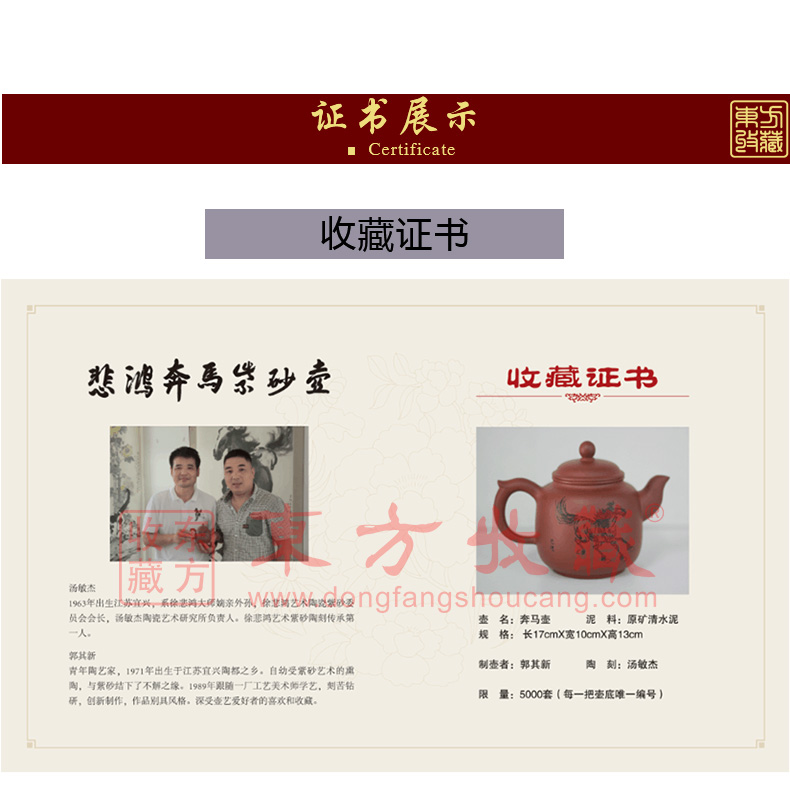 东方收藏承诺遵守商业道德,诚信为本、依法经营,接受会员监督。东方收藏所有藏品均有相关机构出具的证书,如果您发现虚假藏品,即可假一赔十。