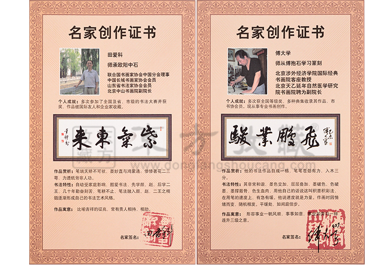 东方收藏承诺遵守商业道德,诚信为本、依法经营,接受会员监督。东方收藏所有藏品均有相关机构出具的证书,如果您发现虚假藏品,即可假一赔十。