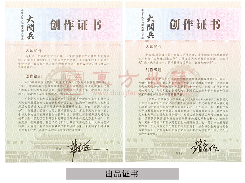 东方收藏承诺遵守商业道德,诚信为本、依法经营,接受会员监督。东方收藏所有藏品均有相关机构出具的证书,如果您发现虚假藏品,即可假一赔十。