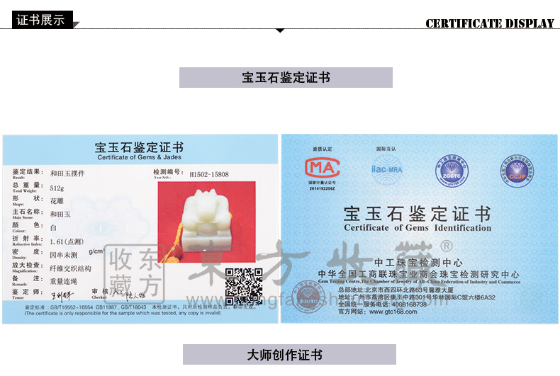 东方收藏承诺遵守商业道德,诚信为本、依法经营,接受会员监督。东方收藏所有藏品均有相关机构出具的证书,如果您发现虚假藏品,即可假一赔十。