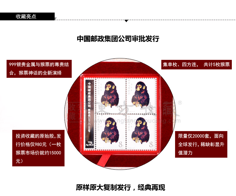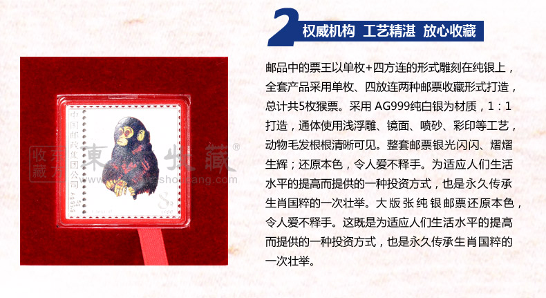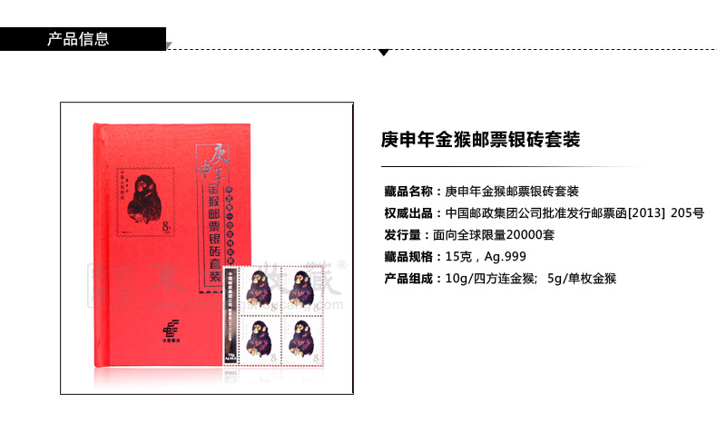 东方收藏 1980庚申年金猴邮票银砖套装 猴年邮票