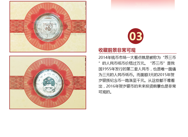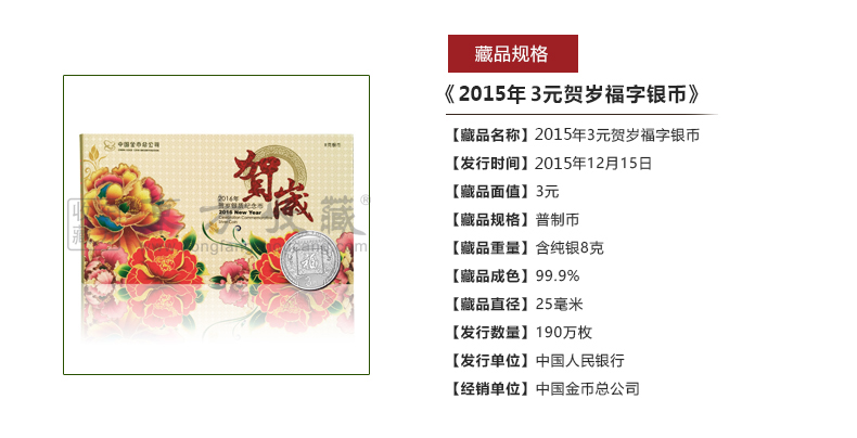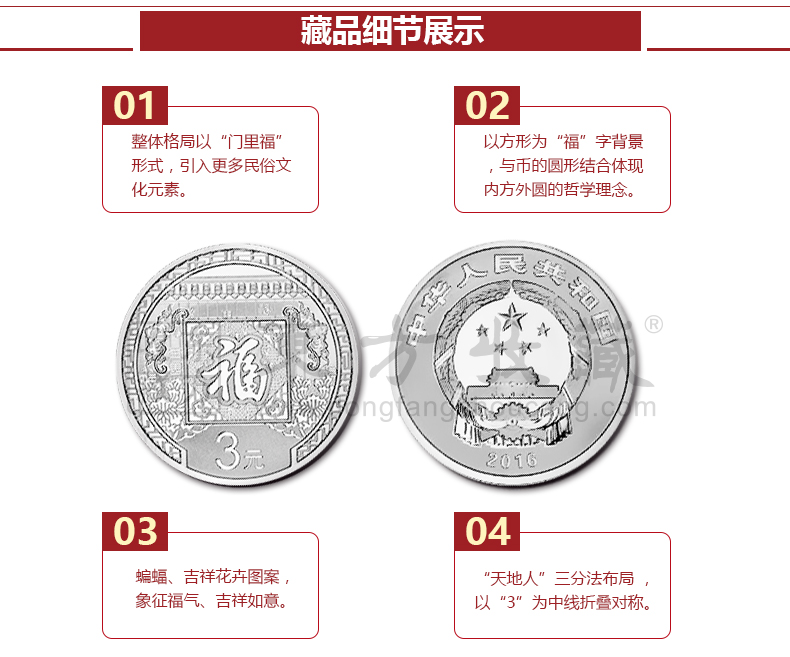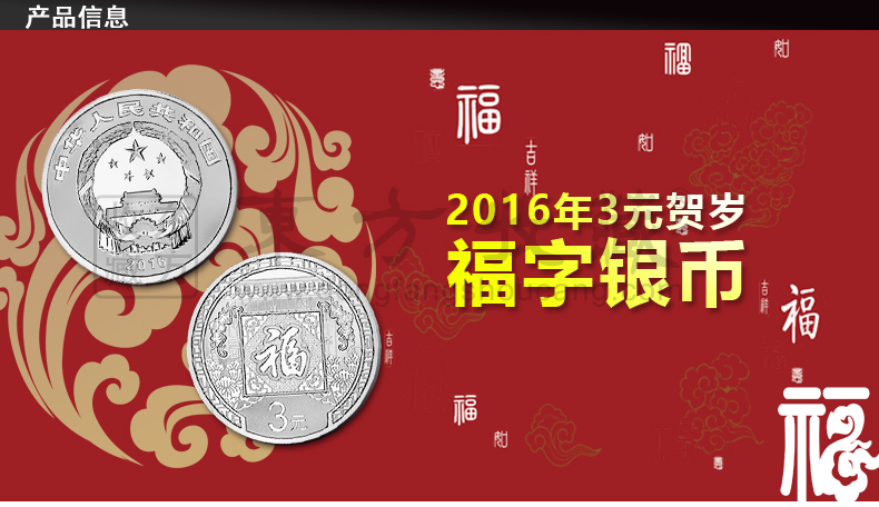 2016年贺岁银质纪念币 2016福字币 3元面值 福字银币 8克银