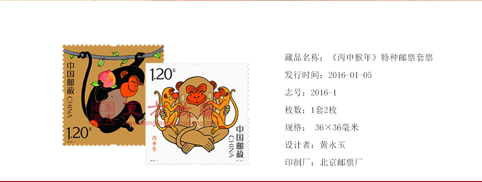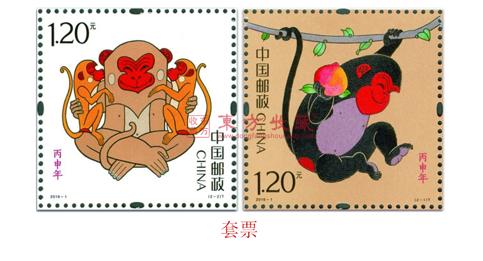 第四轮十二生肖邮票 2016-1《丙申年》特种邮票 2016猴年邮票 套票 2枚 邮费自理 !