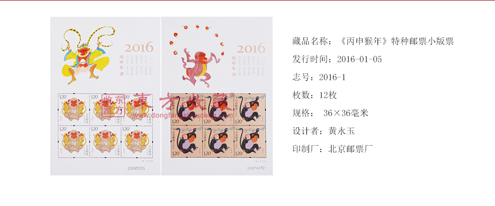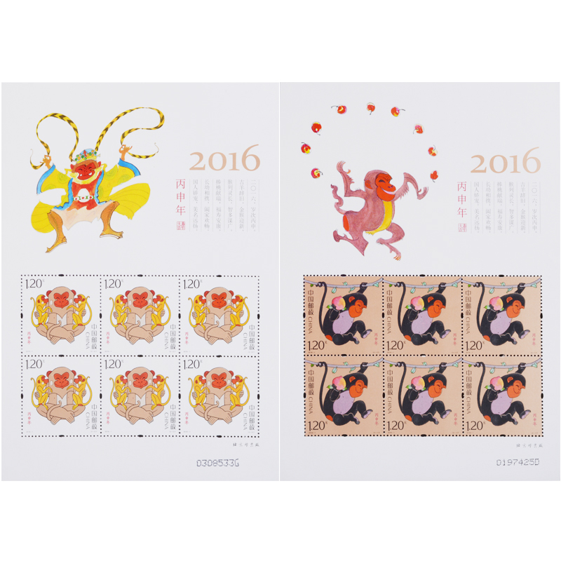第四轮十二生肖邮票 2016-1《丙申年》特种邮票 2016猴年邮票 小版票 邮费自理!