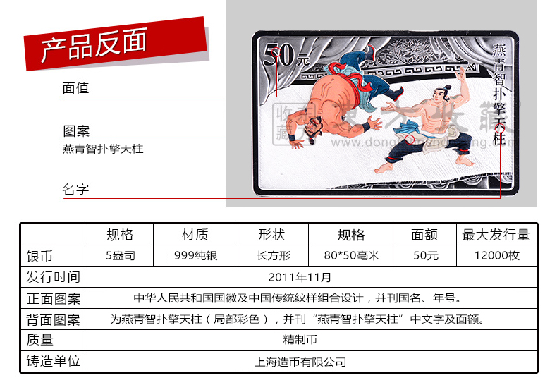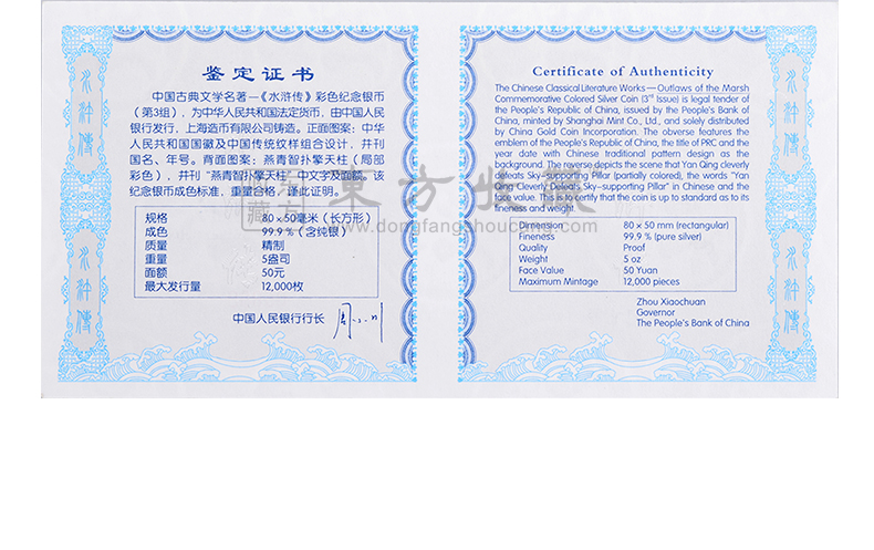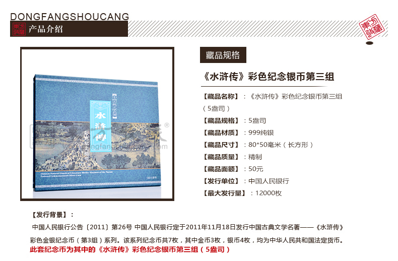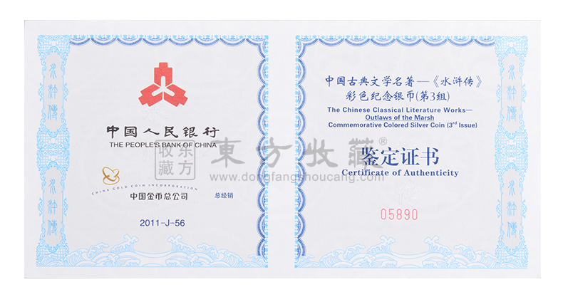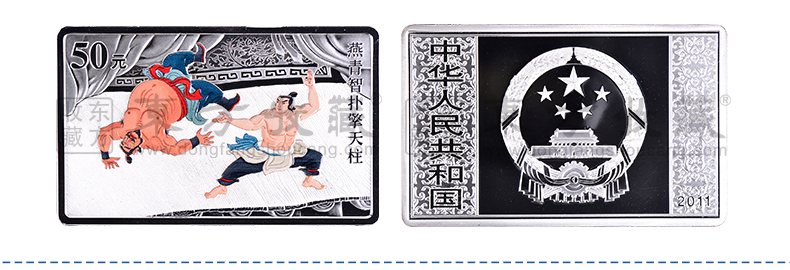 2011年水浒传金银纪念币 第三组 方形彩色5盎司银币