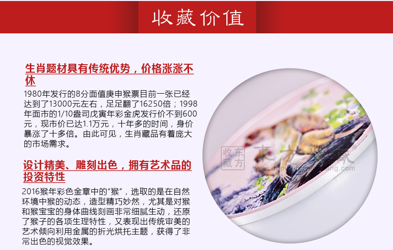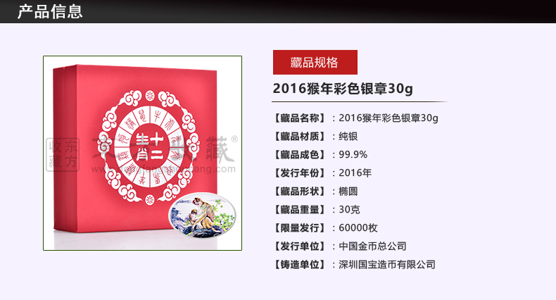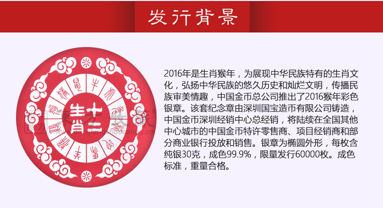 中国金币总公司 2016猴年彩色银章 纯银30克 限量发售 包邮!