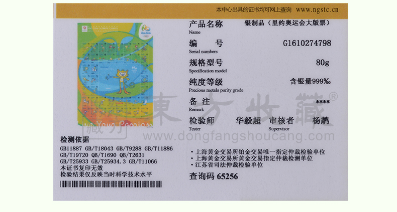 东方收藏承诺遵守商业道德,诚信为本、依法经营,接受会员监督。东方收藏所有藏品均有相关机构出具的证书,如果您发现虚假藏品,即可假一赔十。